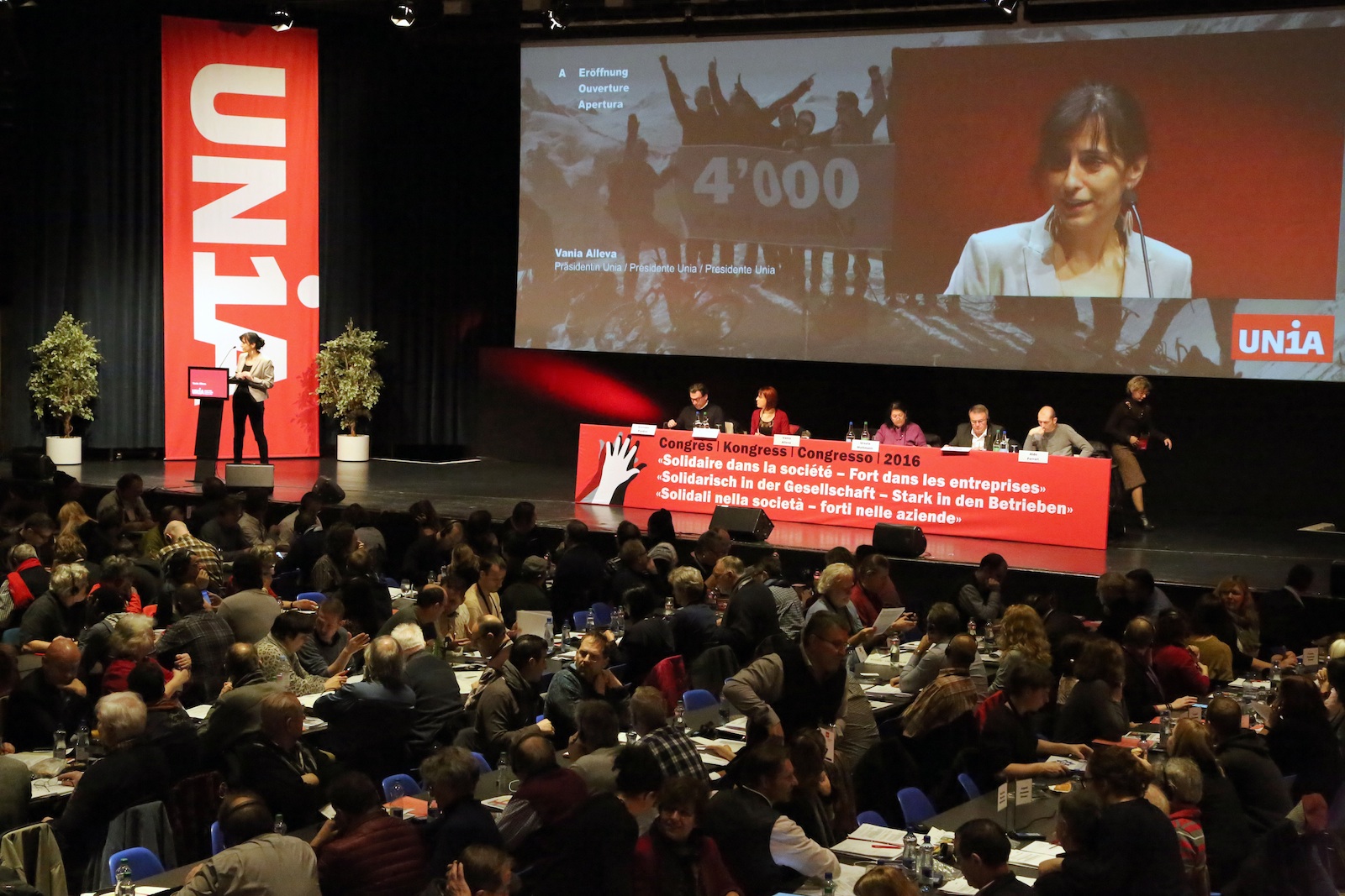 Cette année, le Congrès d’Unia ne pourra pas se tenir en présentiel, comme ici en 2016 lors de la journée supplémentaire qui avait eu lieu à Bienne. Les déléguées et les délégués se rassembleront physiquement par régions et débattront par écrans interposés.