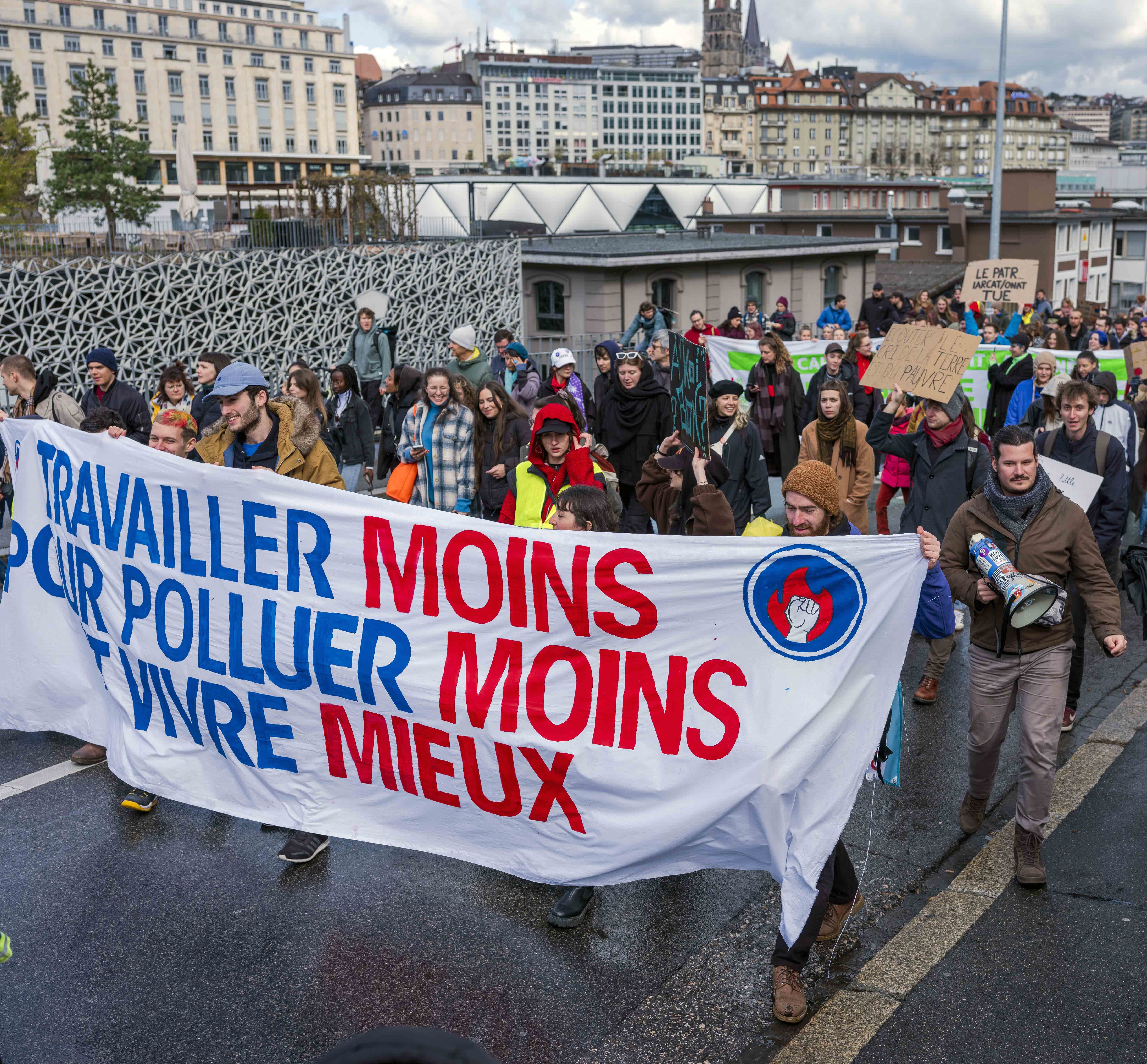 Le 9 avril 2022, dans plusieurs villes de Suisse, la Grève pour l’avenir avait réuni les mouvements climatiques, féministes et syndicaux autour du thème de la réduction du temps de travail.