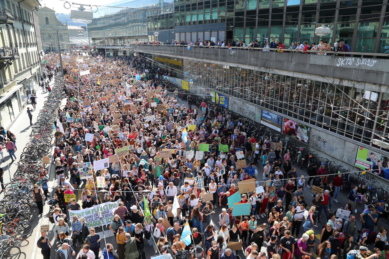 Des manifestations massives, comme celle qui a vu 100000 personnes affluer à Berne en septembre 2019 (photo), aux actions de désobéissance civile, les moyens de lutte en faveur de l’environnement sont multiples. Une thématique au cœur du débat qui s’est tenu récemment.