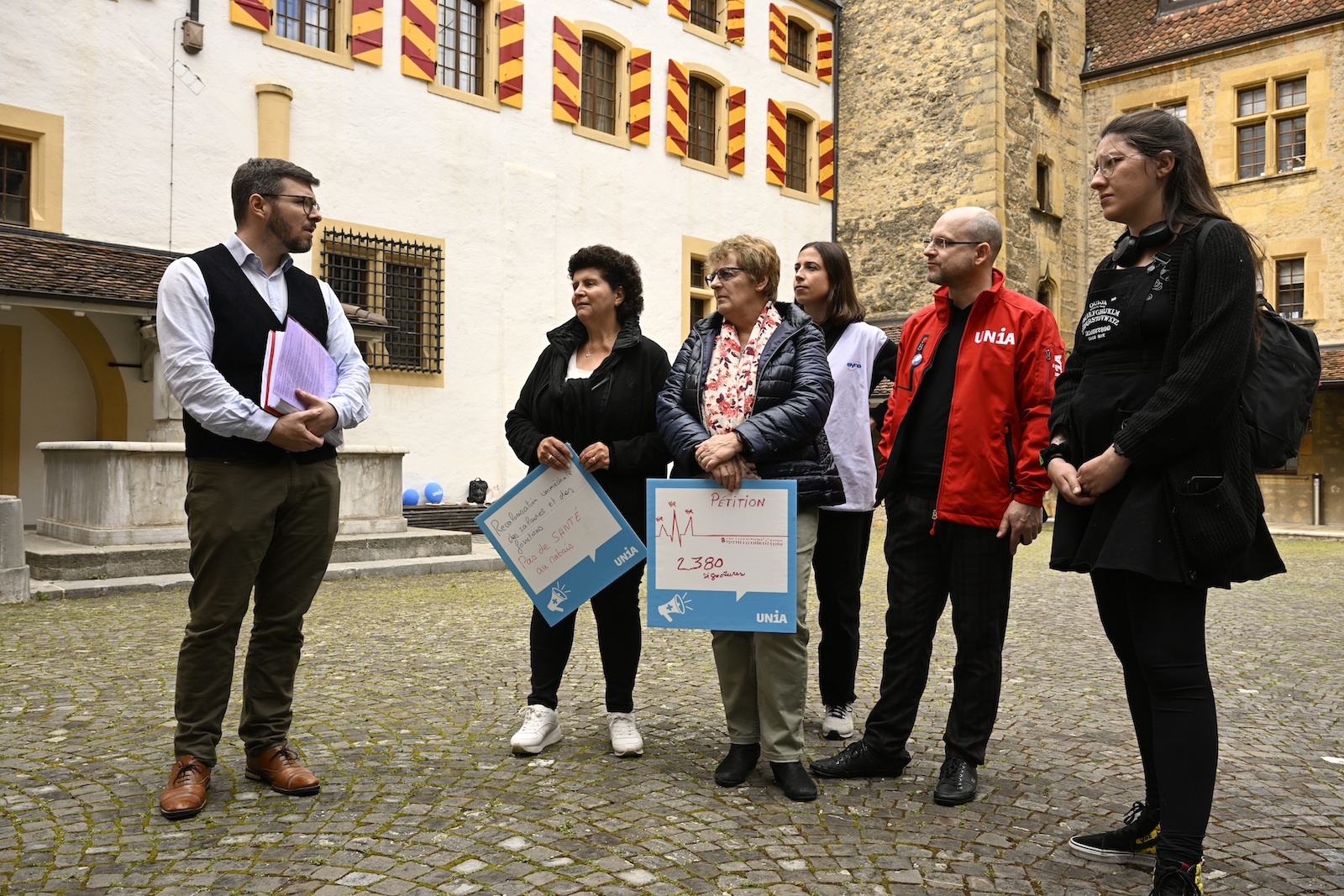 Une pétition et une motion ont été remises à la Chancellerie cantonale réclamant une juste indexation des salaires pour tous les employés du secteur. © Thierry Porchet