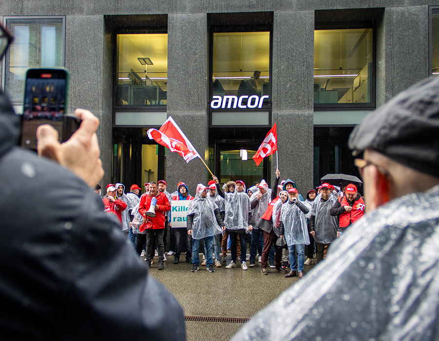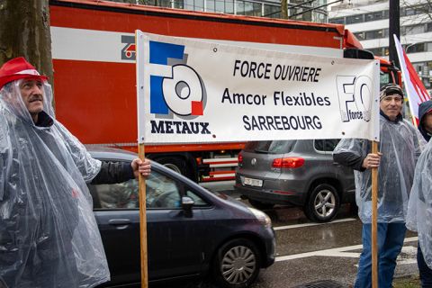 Soutenus par Unia, près d’une centaine d’employés français du groupe d’emballage Amcor ont manifesté lundi devant le siège de la société à Zurich. La multinationale avait annoncé il y a deux mois un licenciement collectif sur son site de Sarrebourg, en Lorraine, touchant 47 des 230 emplois. Face à la détermination du personnel, organisé par le syndicat Force ouvrière (FO), la direction a retiré son plan la semaine dernière. Les salariés se mobilisent maintenant pour obtenir des garanties sur la pérennité de leur usine. «La menace qui pèse sur le site est toujours présente, puisque le groupe ne renonce pas à mener un autre projet de restructuration sur le site», indique FO dans un communiqué. «Nous sommes solidaires des demandes des travailleurs d'Amcor», a déclaré lors de la manifestation Matteo Pronzini, membre de la direction du secteur industrie d’Unia. Amcor emploie 41000 personnes à travers le monde et détient quatre usines en Suisse alémanique. L’année dernière, la société a réalisé un bénéfice record de plus d’un milliard d’euros pour un chiffre d’affaires de 14 milliards.