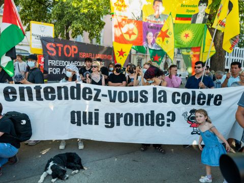 «Contre tous les impérialismes – Pour les droits des peuples et la justice climatique»: en marge du Sommet Biden-Poutine tenu le 16 juin dernier à Genève, quelque 200 manifestants se sont réunis sur la plaine de Plainpalais pour protester contre la rencontre des deux présidents. «Le monde ne vous appartient pas!» précisait le tract de mobilisation de ce rassemblement unitaire. Les participants ont dénoncé les «politiques mortifères de Washington et de Moscou». Et réclamé un désarmement mondial, rappelant, dans un communiqué, que «les Etats-Unis et la Russie disposent respectivement des 1er et 4e budgets militaires les plus élevés du monde». Et que le duo occupe la tête de liste des pays exportant le plus d’armes. Ils ont aussi saisi cette occasion pour exiger des mesures urgentes face à la crise climatique, demandant que les milliards consacrés à l’armement soient investis dans la lutte contre le réchauffement de la Terre. Et fustigé le récent soutien apporté par le locataire de la Maison-Blanche à un gigantesque projet pétrolier en Arctique. «Nos vies et la planète valent plus que les profits des entreprises russes et américaines.» Les manifestants ont aussi défendu le droit des peuples à l’autodétermination, condamnant l’ingérence des deux superpuissances dans plusieurs Etats. La question du traitement réservé aux opposants politiques, à l’image d’Alexeï Navalny ou de Julian Assange, a également alimenté la colère des militants. Plus tôt dans la journée, des membres des communautés syriennes, éthiopiennes et arméniennes étaient aussi venus plaider leur cause.