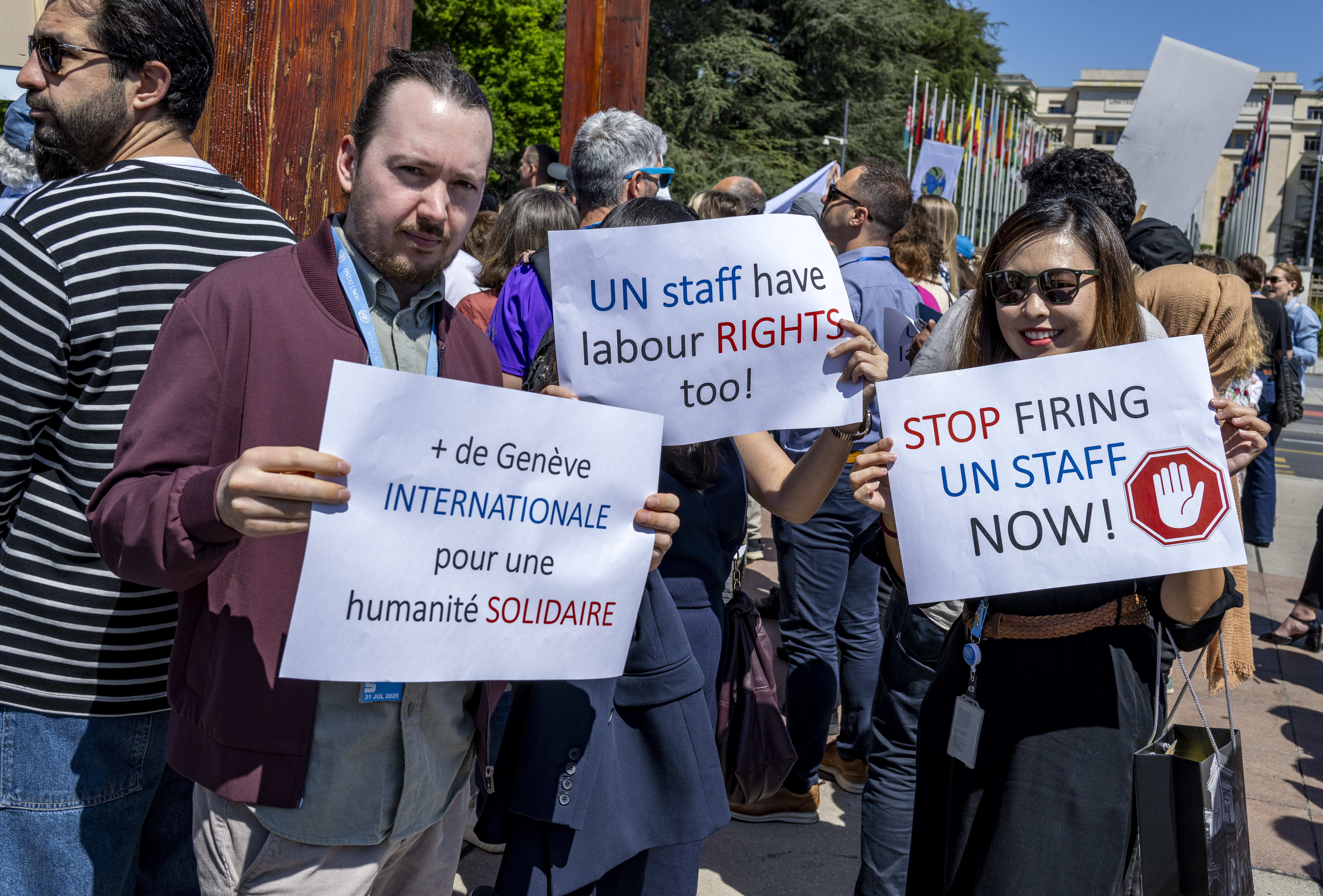«Cette mobilisation est une réussite, car nous n’avons pas l’habitude de prendre la parole pour défendre nos positions», indique au téléphone Séverine Deboos, du syndicat du personnel de l’Organisation internationale du travail (OIT). «Chaque structure onusienne a son propre fonctionnement et ses représentants du personnel, mais nous avons néanmoins réussi à nous unir et à faire passer un message important. Nous sommes plongés dans des temps de grande incertitude et cela génère beaucoup d’anxiété.» La parole portée dans l’espace public par les employés a permis de préciser les contours d’un plan d’économies dramatique, qui touchera chaque agence de l’ONU. Pour l’OIT, on parle de près d’un poste sur dix supprimé, soit 250 personnes dans le monde. «A ce jour, environ 180 licenciements ont déjà été prononcés dans notre périmètre», précise la représentante syndicale. Ailleurs, au sein de l’UNICEF, les coupes budgétaires seront de l’ordre de 20%, tandis que le Programme alimentaire mondial (PAM) devra réduire ses effectifs de 25% à 30% et que le HCR, agence des Nations Unies pour les réfugiés, sera amputée de 30% de son personnel.
