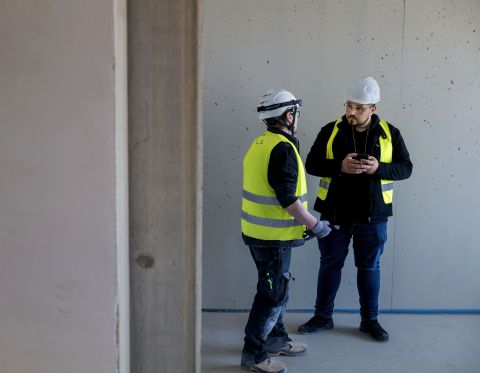 Il passe ainsi plusieurs étages au peigne fin sans rencontrer âme qui vive. Enfin, il trouve quelqu’un en train de faire des finitions dans une cuisine, et prend des photos qui, le cas échéant, prouveront que la personne est bien employée sur ce chantier. D’un ton très courtois, il lui demande sa carte d’identité, son taux d’occupation, son salaire, ses horaires quotidiens, s’il reçoit bien 18 francs par jour pour le panier repas, s’il est payé en liquide ou par virement bancaire, et note toutes les réponses. L’homme coopère sans broncher. Tout semble en règle, rien à signaler ici.