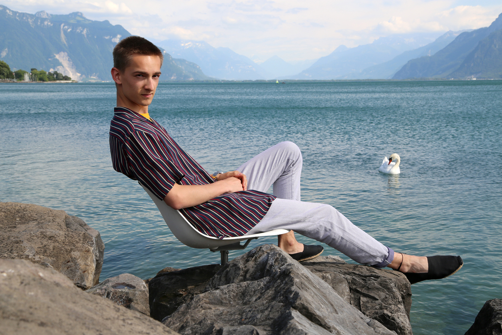 Interrogé sur l’origine de sa passion, Julian Sinclair rigole et explique que ses projets étaient tout autres au départ: «Il y a une année, j’étais convaincu que j’allais faire carrière dans le cinéma comme réalisateur, mais je me suis rendu compte que, dans cette industrie pourtant si créative, les gens n’étaient pas très ouverts. Je voulais avoir la liberté de créer ce que je voulais.» Malgré ses critiques, le jeune homme a quand même prévu de tourner un film cet été avec des amis. Celui-ci devrait être présenté lors de différents festivals de courts métrages en Suisse romande. Mais revenons à la mode. C’est lors d’un voyage en août 2017 à Copenhague que Julian Sinclair découvre, au musée du design, les petites robes noires de Chanel et le design japonais. Fasciné, il achète un carnet de croquis. Le processus est lancé et il ne s’arrête plus. De fil en aiguille, il décide de créer une petite collection de T-shirts sur Instagram (qui seront d’ailleurs sûrement vendus dans un magasin lausannois prochainement). Il part ensuite en Angleterre chez un fournisseur de tissus. Celui-ci, après avoir étudié ses dessins, lui dit qu’il a du potentiel et le prend sous son aile. Il lui conseille de commencer à Londres car c’est, d’après lui, le meilleur endroit pour lancer sa marque. «On a brûlé toutes les étapes. Je n’avais pas d’expérience, pas d’écoles d’art, pas de bagages. J’ai de la peine à réaliser que c’était il y a six mois. J’ai tellement appris et grandi depuis…» se remémore-t-il. Optimiste à cent pour cent, le styliste avoue néanmoins en avoir bavé pendant ces quelques mois. Le mot qui revient d’ailleurs le plus souvent lorsqu’il parle de cette période? Stress! «Heureusement, j’ai pu compter sur toute une équipe à Londres pour m’aider à créer ma collection», souligne-t-il non sans nuancer: «La distance était vraiment difficile à gérer, parce que je devais leur envoyer mes croquis par mail et leur faire comprendre ce que je voulais.» Il raconte également les difficultés financières qu’il a rencontrées pour mener à bien son projet. «La créativité domine mais, sans argent, elle ne peut être réalisée pleinement.» Pas de quoi décourager le styliste – qui aura bénéficié de l’appui de sponsors – relevant encore que sa jeunesse l’a servi dans sa démarche.