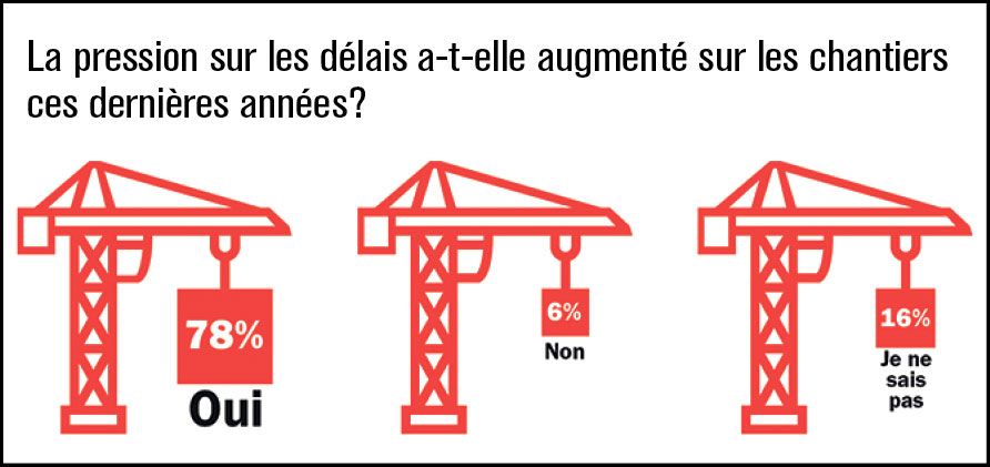 Sur les 12203 travailleurs sondés, 78% ont indiqué que la pression des délais a augmenté ces dernières années et 73% d’entre eux ont affirmé que cela a engendré plus de stress. Comme conséquences, ils ont répondu à 55% que leur santé en pâtissait, à 52% que la qualité du travail diminuait et à 51% que la sécurité au travail était négligée. L’impact de la pression sur les délais ne s’arrête pas aux portes du chantier, selon cette étude, mais a des répercussions sur la vie privée des employés du secteur principal de la construction. C’est ainsi que 68% des maçons interrogés se voient contraints de sacrifier une grande partie du temps qu’ils consacrent à leur famille et aux loisirs. «On voyait les symptômes depuis un moment sur les chantiers, mais on ne s’attendait pas à des chiffres si marqués et à une problématique d’une telle ampleur», réagit François Clément, membre de la direction du secteur de la construction chez Unia.