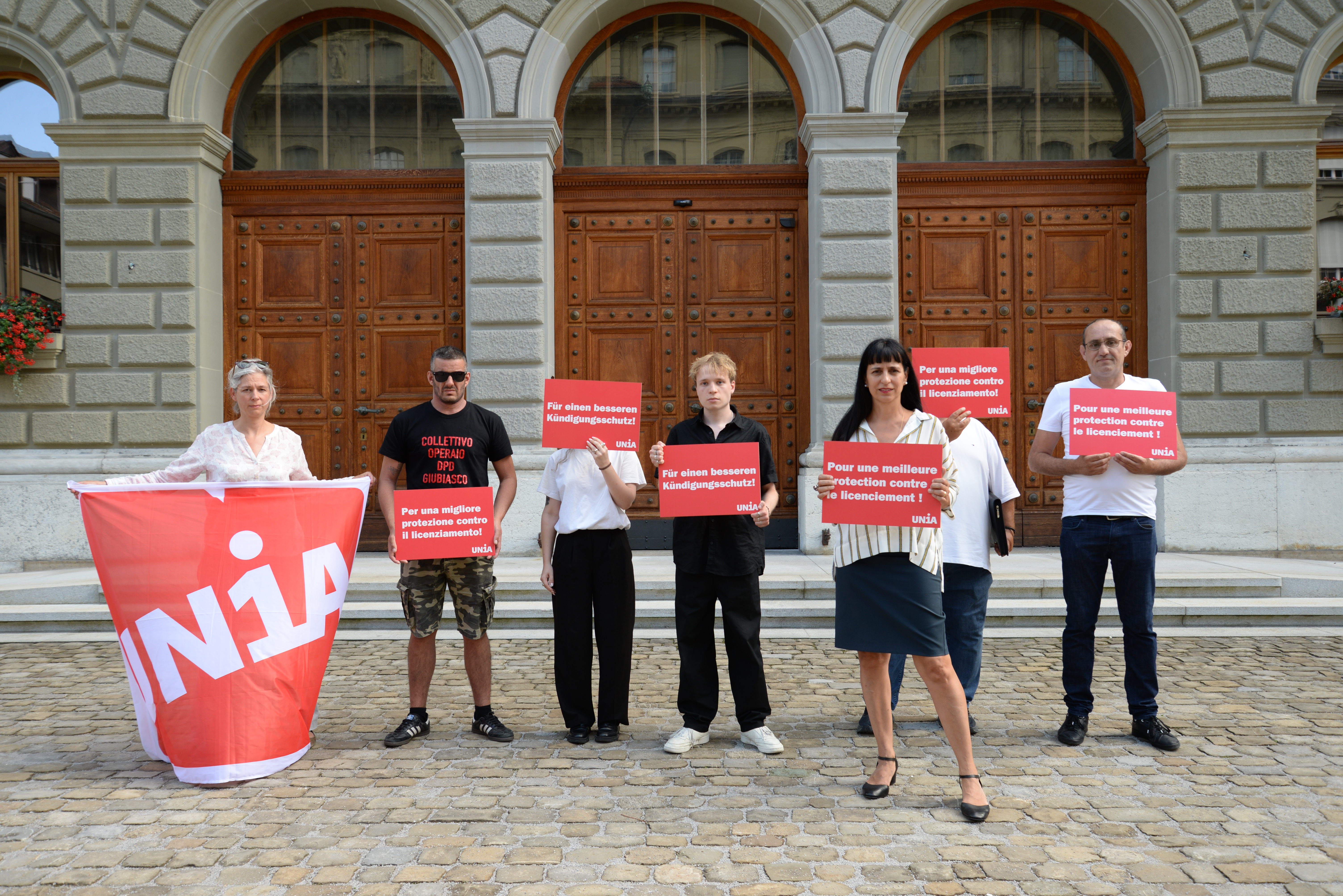 Entourée de victimes de licenciements abusifs, Vania Alleva, présidente d’Unia, avait rencontré le 12 août le conseiller fédéral Guy Parmelin pour plaider la reprise de la médiation.