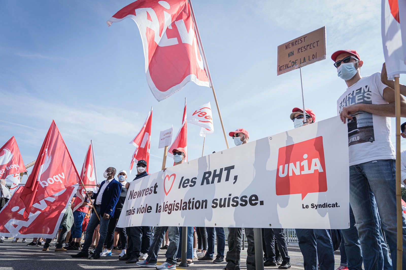 Plus de 150 travailleurs du transport aérien et de l’assistance au sol ont manifesté vendredi dernier à l’aéroport de Genève-Cointrin, alors que 1500 salariés, selon les syndicats, se rassemblaient simultanément sur le site de Zurich-Kloten. Ils dénoncent des réductions de salaires, des dégradations des conditions de travail et des licenciements. «Pas contents, pas contents!» ont scandé à Genève les manifestants, en défilant du terminal du fret à la zone des départs à l’appel des syndicats SEV, SSP et Unia. Des mesures pour réduire les coûts de personnel sont en effet en cours dans des sociétés comme Air France-KLM, Canonica, Dnata, Gate Gourmet, ISS, Newrest ou Swissport.