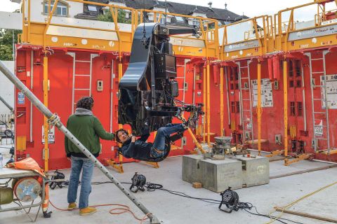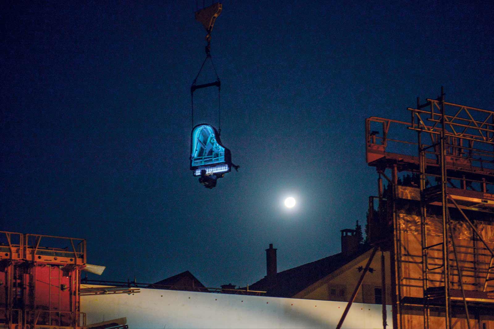 Oui, c’est jouissif. A chaque vol, je me sens comme un enfant qui retrouve son jouet. J’ai tenté le parapente, mais je n’ai plus réessayé de peur de ne faire plus que ça. A la verticale, je sens le piano comme un accordéon géant. De très lourd, il devient léger. Ce mouvement, ce souffle, nourrit la musique. J’ai l’impression que le vent traverse l’instrument – un sentiment impossible pour un piano au sol, au contraire d’un violon ou d’une trompette par exemple. Le grutier, c’est les ailes du piano. Cette sensation d’air unique est aussi rendue possible grâce au génie du facteur de piano Fernand Kummer qui a trouvé un système, fait de ressorts et de contrepoids, pour frapper les cordes et les relâcher, sans les agresser, mais au contraire en les faisant scintiller.