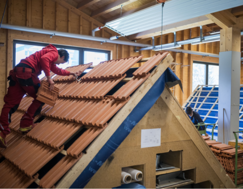 Des maquettes ont été créées pour permettre aux apprentis de réaliser une toiture réelle, en pente et plate, avec toutefois des panneaux plus petits.