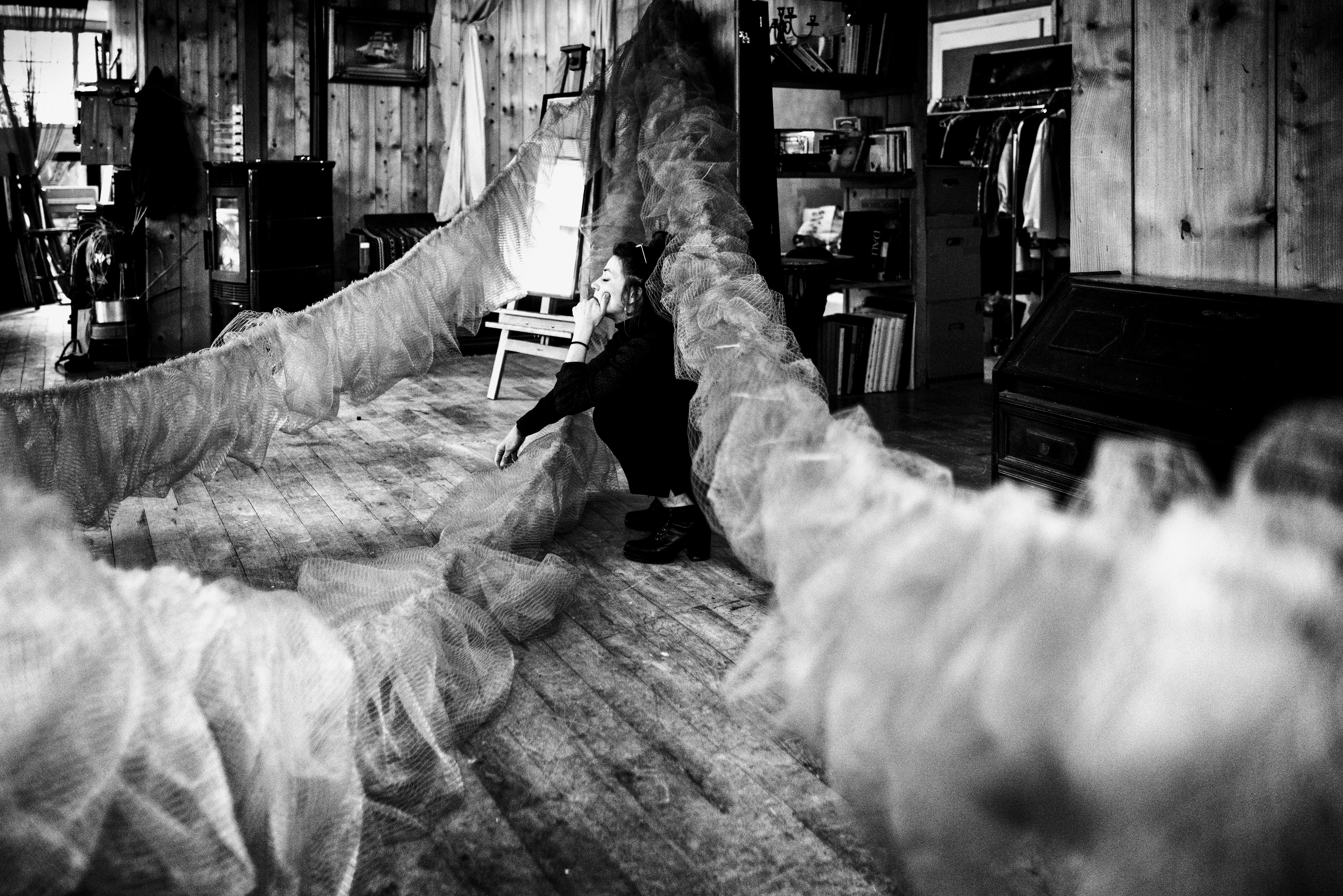 L’exposition s’ouvre avec une première photo, énigmatique, celle d’une main de travailleuse tenant une boule de verre. Entre force, délicatesse et dextérité, elle introduit les images suivantes et les objets retraçant le travail des dix-neuf artisanes présentées à la Fondation Jan Michalski à Montricher. Ce lieu consacré à la littérature et à l’écriture, dans une campagne vaudoise bucolique, offre, une fois n’est pas coutume, un écrin de choix au travail manuel.