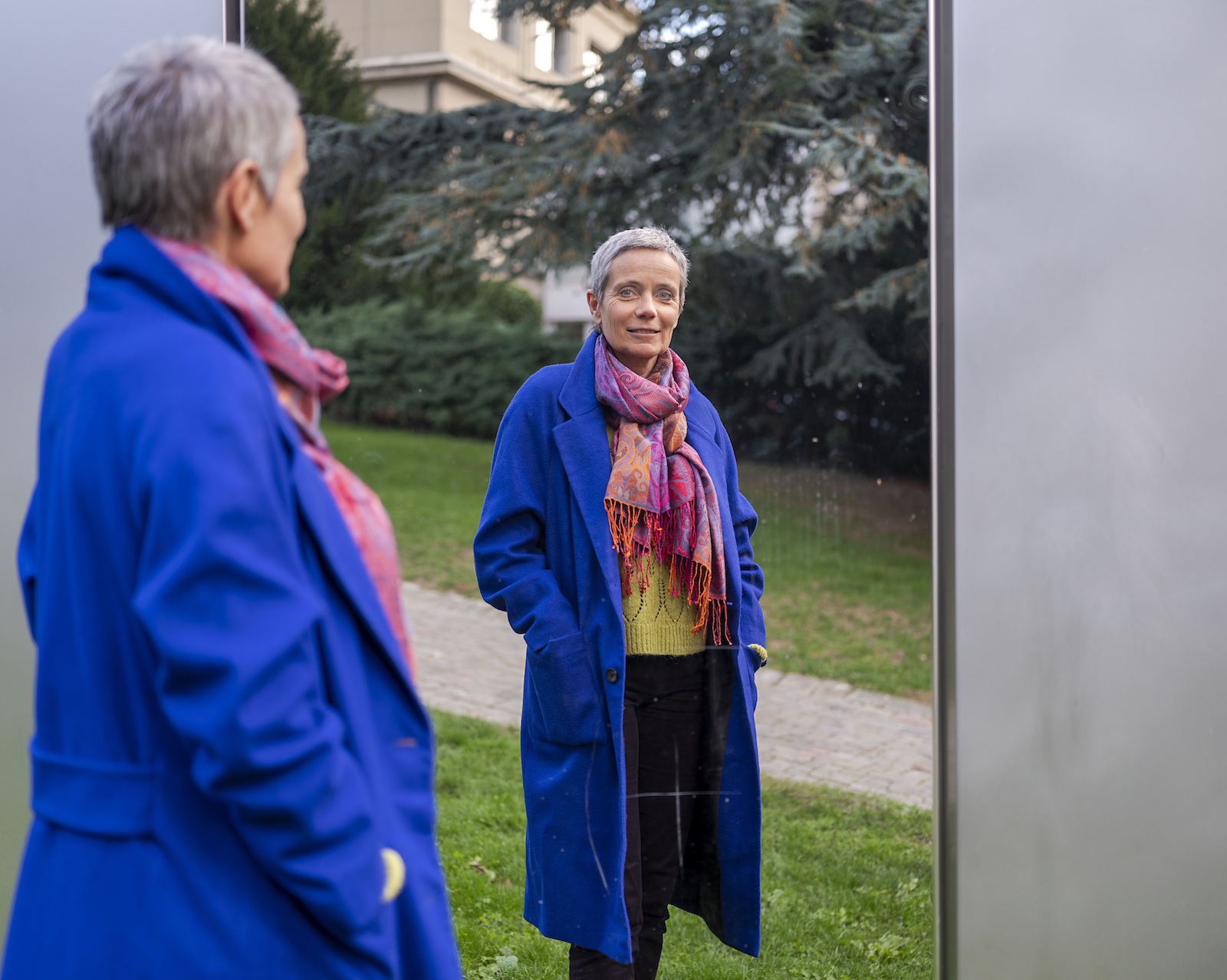 Portrait d'Emmanuelle Ryser dans un miroir.