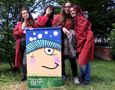 «Nous avons réalisé dix boîtes autour de l’école, avec des images en lien avec l’électricité. Après les ampoules, les câbles, les éclairs, on a élargi sur la puissance et la force, puis nous avons continué de créer en toute liberté. Ou presque. L’architecte de la ville pose aussi un œil sur les projets. Et les quartiers historiques de la Cité nous sont interdits.»