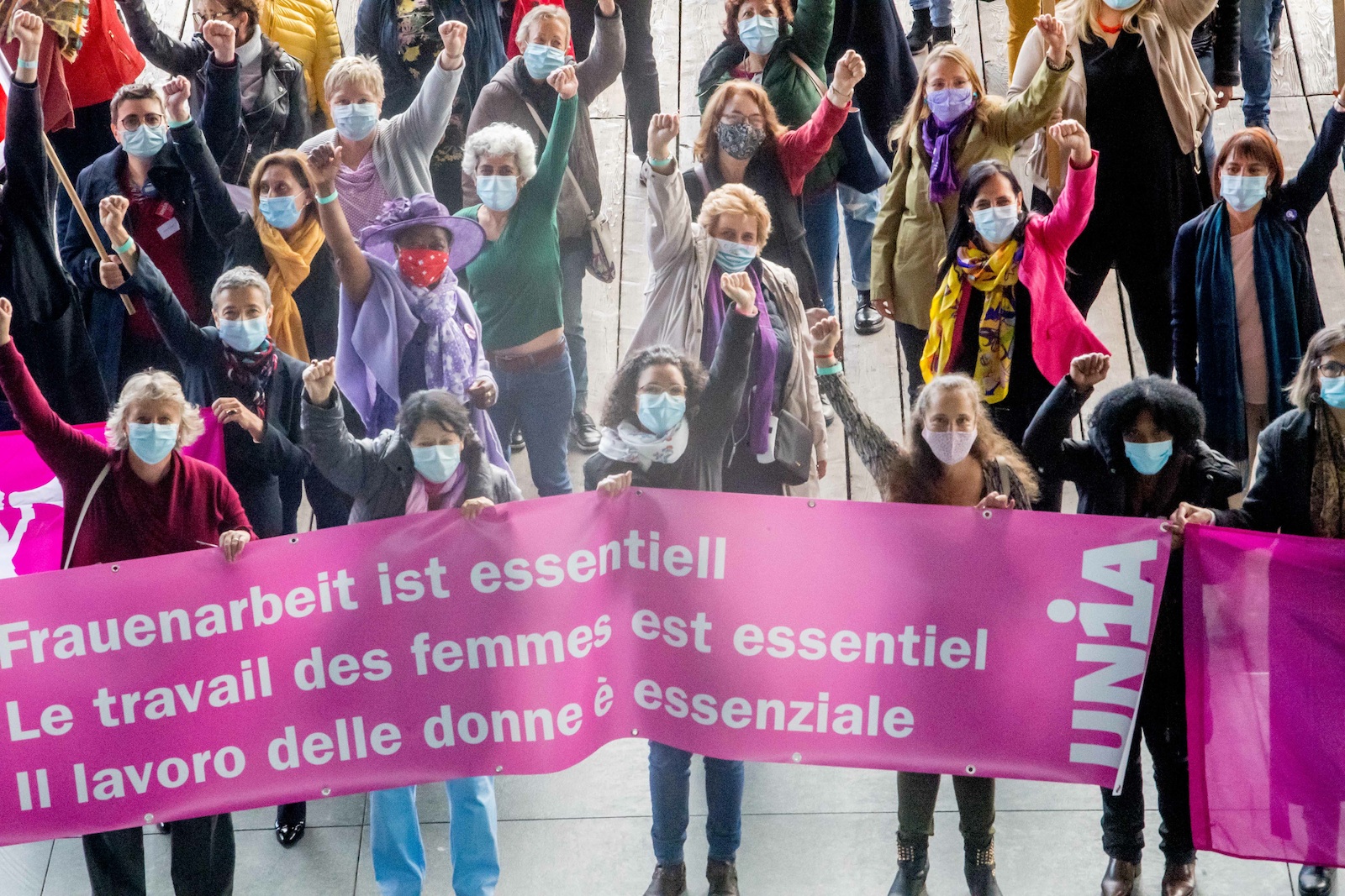 Les déléguées des groupes d’intérêt femmes d’Unia sont motivées à faire avancer leurs revendications après deux jours de discussions à Lucerne, marquées par la crise sanitaire et l’engagement féminin dans les professions s’étant retrouvées en première ligne ces derniers mois.