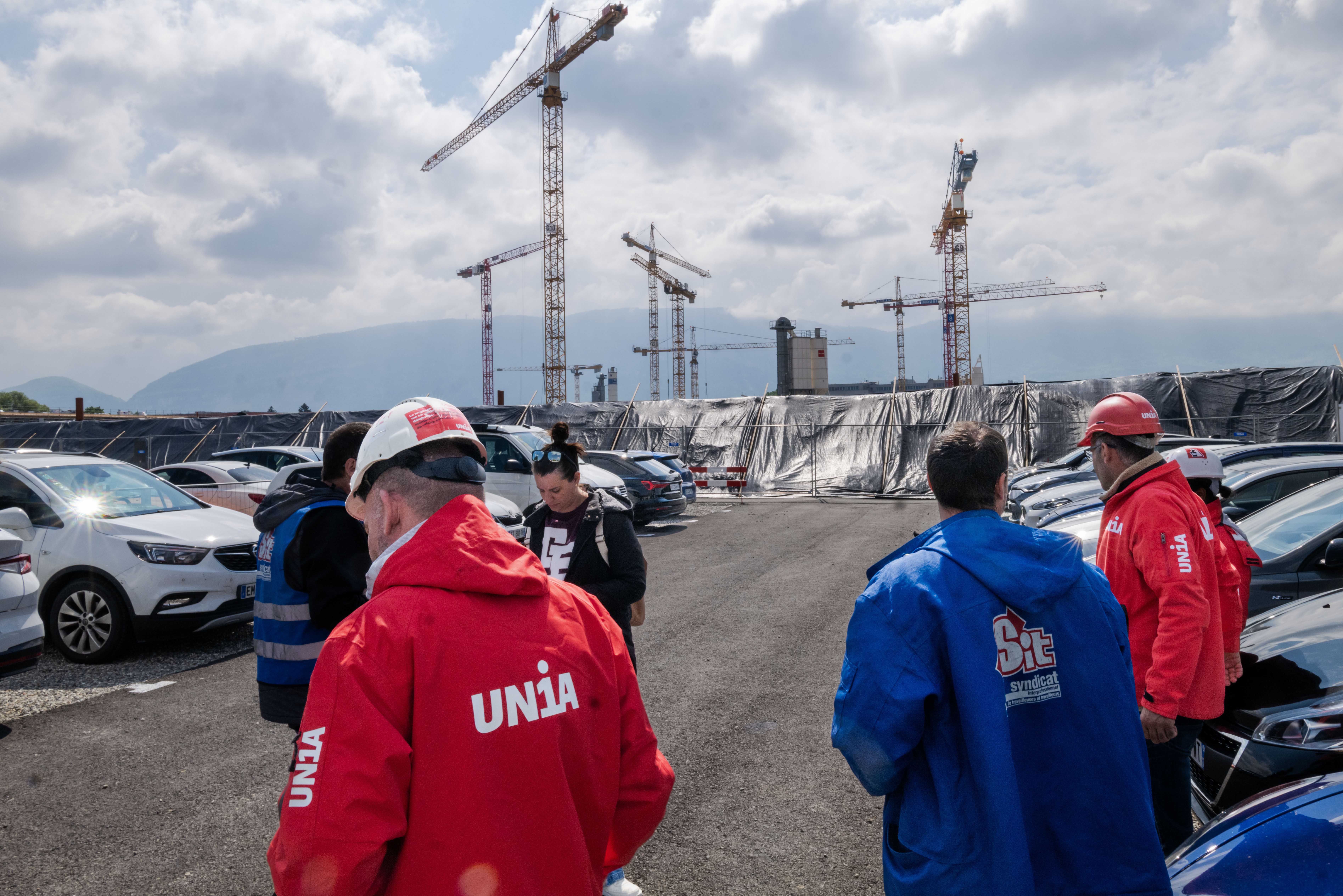 Unia et le SIT ont convié la presse sur un chantier stratégique à Genève comptant, selon leurs informations, 50% d’employés intérimaires. Les syndicats ont dénoncé une flexibilité toujours plus grande demandée aux maçons.