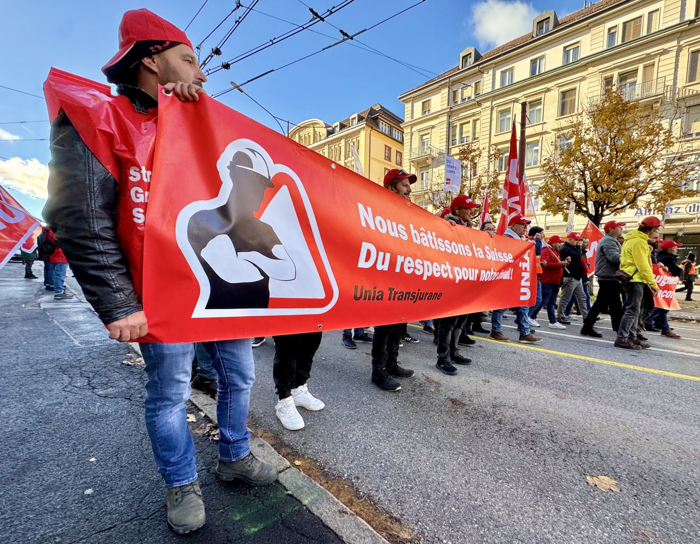 Pour rappel, cette grève fait suite à l'échec des négociations en vue du renouvellement de la Convention nationale de la construction, qui se sont achevées le 28 octobre. En cinq rondes, la Société suisse des entrepreneurs (SSE), qui représente les employeurs de la branche, n'a fait aucune concession. Au contraire, elle a posé des exigences qui représenteraient une nette détérioration des conditions de travail, et qui peuvent se résumer par «travailler plus pour gagner moins».