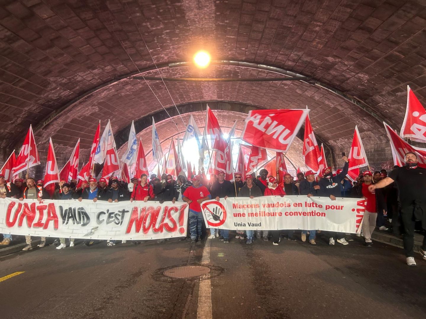 Tous à Lausanne! Après les fortes mobilisations cantonales de lundi, les maçons de toute la Suisse romande convergent sur la capitale vaudoise pour la grande manifestation unitaire, point d’orgue de la grève dans cette partie du pays. Cela afin de protester contre l'échec des négociations en vue du renouvellement de la Convention nationale de la branche. Suivez les temps forts de cette journée avec l'Evénement syndical.