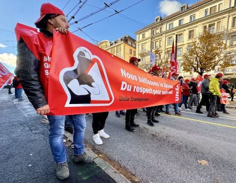 Selon un communiqué des syndicats Unia et Syna, diffusé en fin de matinée, près de 7000 travailleurs ont cessé leur travail et manifesté dans les rues de différentes villes de Suisse romande le 3 novembre, premier jour de la grève dans cette partie du pays.