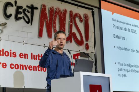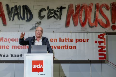 Nico Lutz, responsable national du secteur construction à Unia, considère que les exigences du camp patronal sont «une attaque frontale contre les droits et la dignité des travailleurs. Dans toute la Suisse, on est en train de voter la grève. Mais l’assemblée de ce soir est la plus grande. Vous êtes les plus combattifs, vous êtes notre locomotive. Ensemble, on va gagner!»