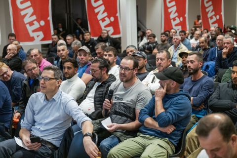 «Il y a 35 ans, on vivait mieux avec mon seul salaire qu’aujourd’hui, alors que ma femme travaille aussi, confie Tonio, un machiniste qui participe à la réunion. Les loyers, les assurances maladie, tout augmente, on ne s’en sort pas. Il faut qu’on gagne ces négociations, on est en position de force!» Pour Hugo, qui travaille dans le génie civil, les propositions des patrons sont inadmissibles. «Ils aimeraient pouvoir faire tout ce qu’ils veulent et qu’on se taise. Mais on a un travail très pénible. J’ai seulement 41 ans, et ça ne fait que sept ans que je suis dans ce métier, mais j’ai déjà des douleurs chroniques au dos et des sciatiques. Même la retraite à 60 ans, c’est trop tard.»