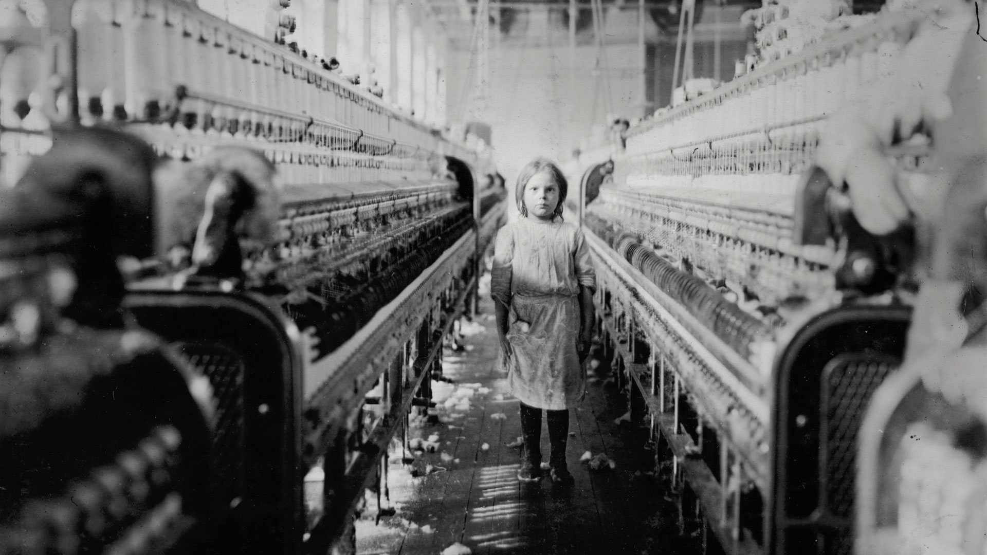 Fillette travaillant dans une usine de filature à Newberry, en Caroline du Sud en 1908, photographiée par Lewis Hine qui, par ses images, a contribué à la lutte contre le travail des enfants aux Etats-Unis.