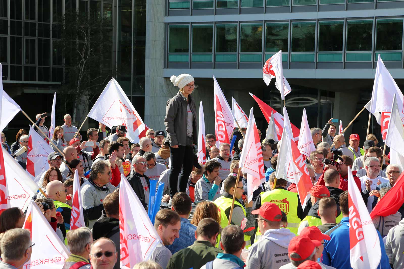 Important et bruyant rassemblement le 2 octobre dernier devant l’entreprise Nestlé, à Vevey, organisé par le syndicat allemand des travailleurs de l’alimentation, NGG. Venus de plusieurs villes d’Allemagne à bord de onze bus, quelque 400 ouvriers ont fait le voyage pour exprimer leur colère face aux restructurations annoncées à la mi-juin. La multinationale envisage en effet de fermer des usines et des lignes de production et de réduire les coûts salariaux. Six sites sont affectés par ces décisions, à savoir celui de Ludwigsbourg (succédanés de café) et de Weiding (laboratoire) – qui vont devoir mettre la clef sous le paillasson – de Singen et Lüdinghausen (Maggi), de Biessenhofen (céréales pour bébés), et le siège national de Frankfort. Les salariés allemands ont dénoncé en force cette situation, soutenus par des représentants de différents syndicats, dont l’Union internationale des travailleurs de l’alimentation, de l’agriculture, de l’hôtellerie et des branches connexes (UITA) et Unia.
