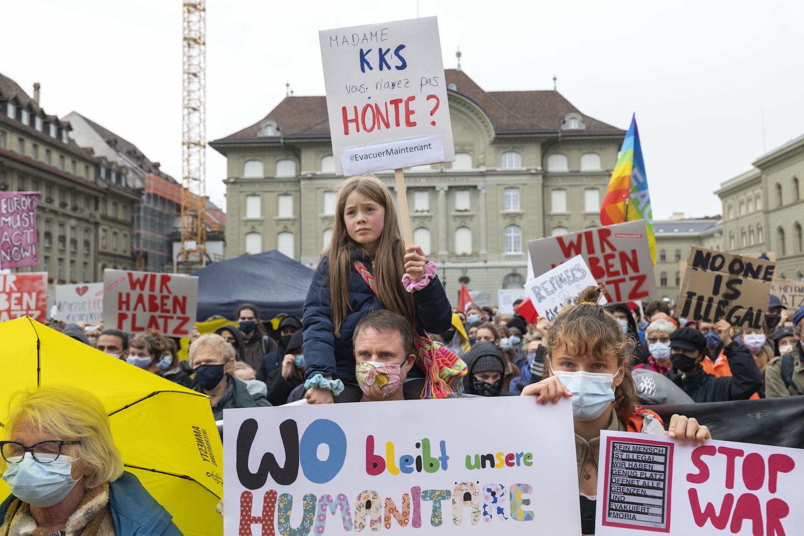 «Nous avons de la place! Les réfugiés sont les bienvenus!»: Voilà le message véhiculé samedi dernier par plusieurs centaines de manifestants réunis à Berne pour exiger l’accueil immédiat d’exilés du camp de Moria, sur l’île de Lesbos, en Grèce. Rappelons que ce lieu insalubre et misérable, occupé par plus de 12000 personnes alors qu’il était prévu pour 3000, a brûlé le 9 septembre dernier. Ses habitants sont alors restés plusieurs jours dans la rue, sans aide, bloqués par la police et des groupes d’extrême droite leur interdisant l’accès aux villes, rapportent les ONG à l’origine du rassemblement national. Les migrants ont depuis été relogés dans un camp de l’OTAN, «clôturé avec du fil barbelé, gardé par la police et l’armée, et composé de tentes instables, dangereusement proches de l’eau, installées sur un ancien site militaire». Une situation inhumaine aux frontières de l’Europe, dénoncée par les militants qui ont demandé au Conseil fédéral de réagir en conséquence, en recevant immédiatement des réfugiés. Les activistes ont exigé une politique migratoire «qui protège la dignité et les droits de tous», en appelant à la responsabilité du gouvernement et à une solidarité urgente et essentielle. Cette requête avait déjà été formulée en juin dernier par 132 organisations et 50000 personnes signataires d’une pétition réclamant l’évacuation des camps grecs de la honte.