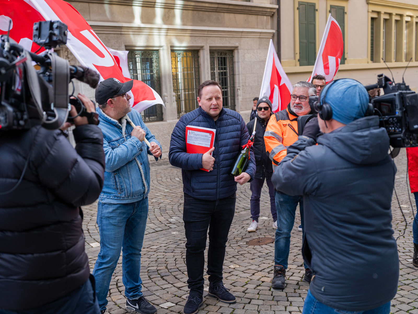 En cette matinée glaciale du 23 avril, une dizaine de travailleurs de Vetropack accompagnés d’Unia ont remis une pétition munie de plus de 5000 signatures au président du Grand Conseil. Ils ont demandé le maintien de la dernière verrerie industrielle de Suisse, la préservation des 175 emplois et d’un savoir-faire unique. «Nous avons présenté hier notre projet à la direction. Nous avons eu le sentiment qu’elle était attentive à nos propositions. Le rapport final sera remis à la fin du mois», explique Fabio Casimo, l’un des employés présents, qui croit au sauvetage du site. Tout comme son collègue Gianpiero Calzola, pour qui l’usine représente tout un pan de l’histoire familiale: «Mon grand-père a travaillé à Vetropack. Enfant, j’allais parfois apporter les repas à mon père. Je suis la troisième génération... Même si les conditions de travail sont difficiles, j’aime mon travail et l’ambiance familiale qui règne dans l'usine.» D’autres camarades sont présents pour témoigner également de leur fierté d’avoir mené à bien cette période de consultation. «On a bien bossé!, lance l’un d’eux. C’est une expérience de vie!»