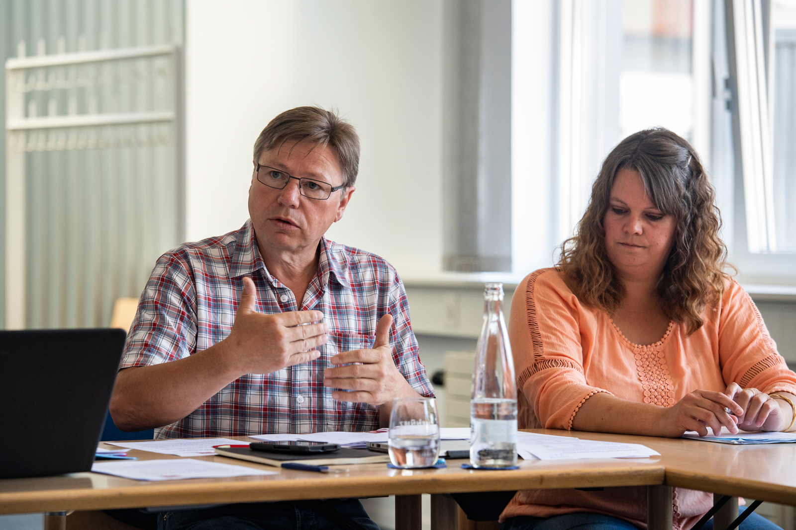 Armand Jaquier, secrétaire régional d’Unia Fribourg, à côté de Virginie Burri du SSP