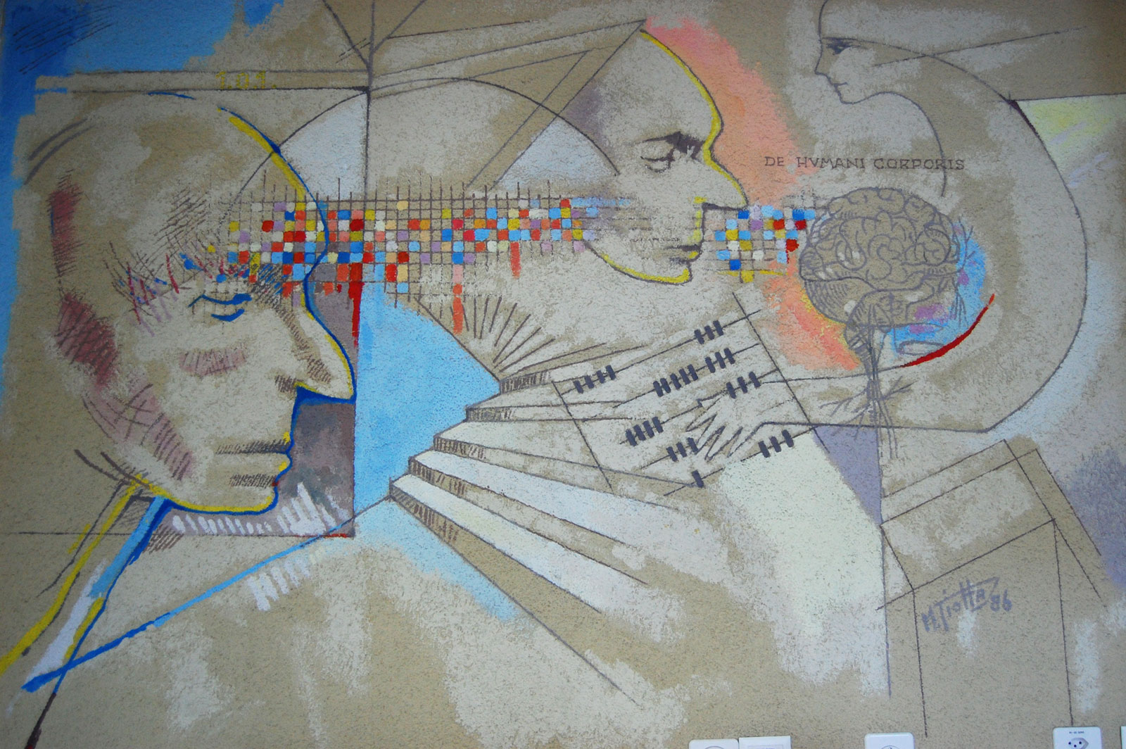 Une des fresques ornant les murs du site chimique de Monthey, celle réalisée à l’époque pour le centre informatique de l’entreprise Huntsman.
