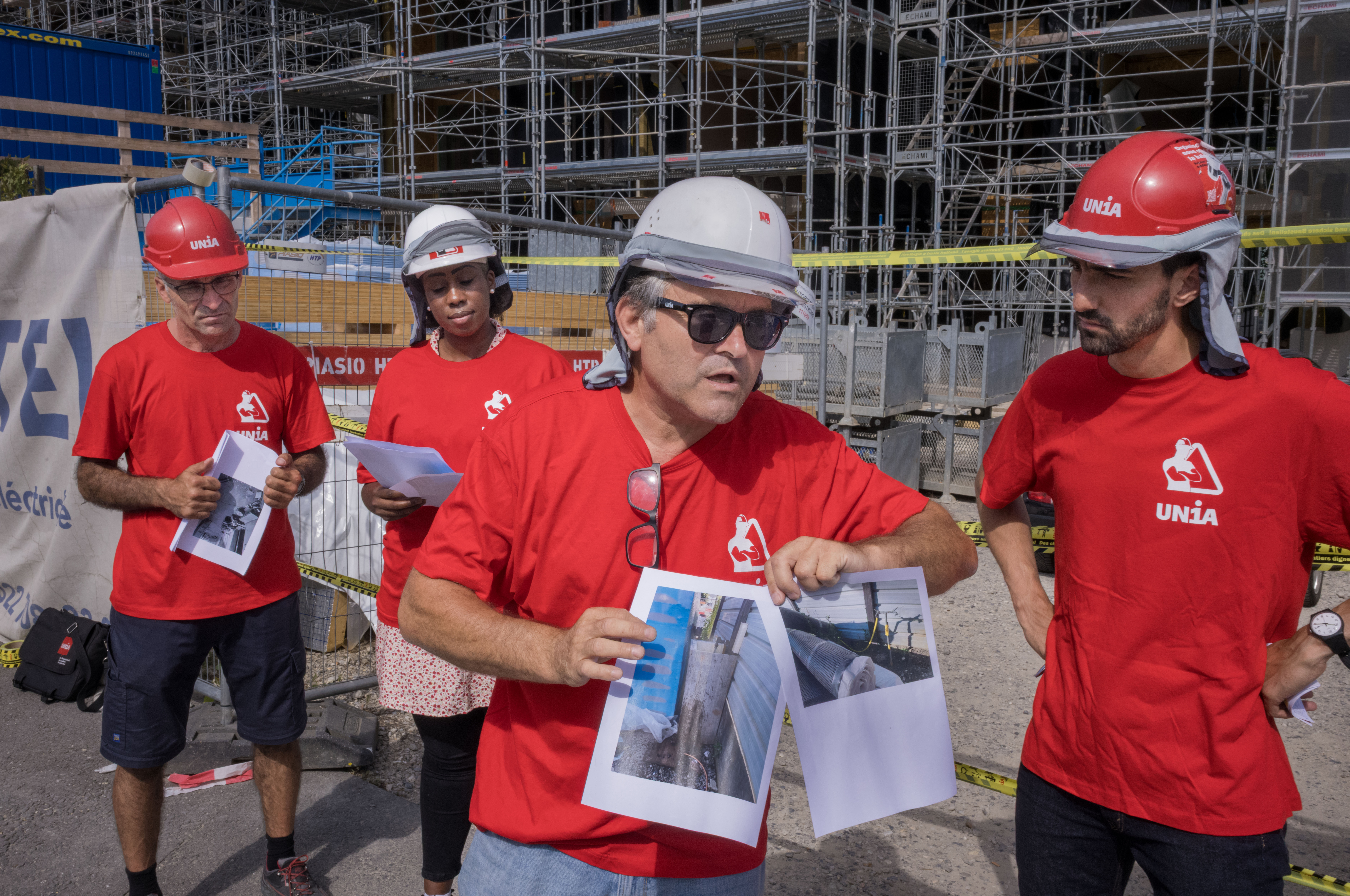 Dans le cadre de la campagne pour des chantiers dignes, Unia Genève a convoqué la presse devant un chantier problématique sur lequel il a dû intervenir plusieurs fois.
