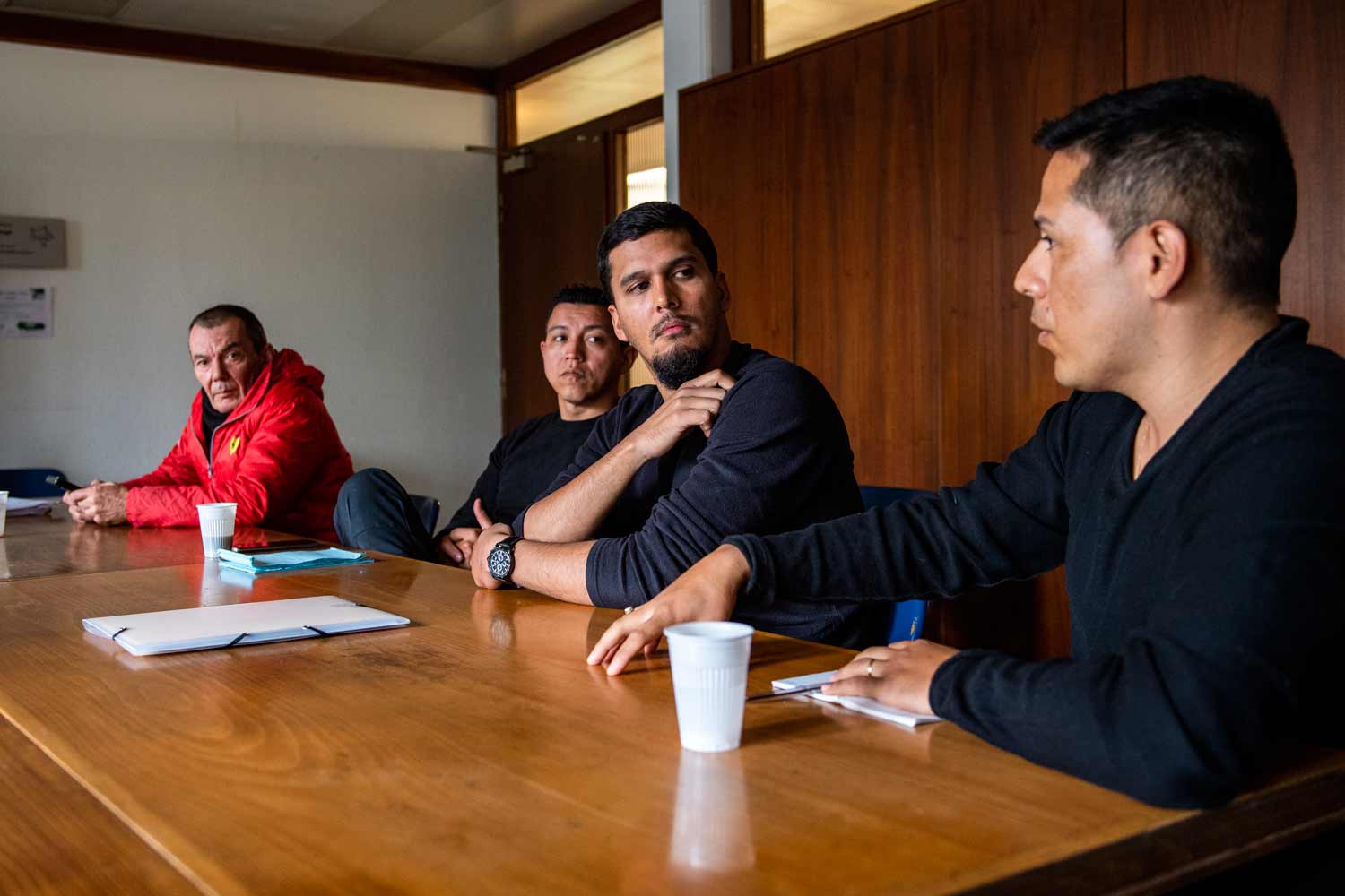 Les quatre délégués d’Epsilon, Aquilino, Andrés, Esteban et Antonio (de gauche à droite), se battent pour améliorer leurs conditions de travail mais aussi pour leur dignité.