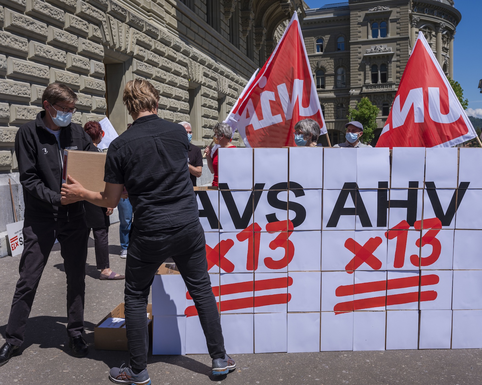 L’initiative AVSx13 a abouti, avec 137550 signatures récoltées en pleine période de pandémie. L’Union syndicale suisse (USS), qui s’en félicite, a déposé les paraphes vendredi dernier à la Chancellerie fédérale à Berne. Une remise à laquelle ont participé plusieurs personnalités et membres d’organisations du comité d’initiative. Pierre-Yves Maillard, président de l’USS, a salué l’engagement de toutes les personnes s’étant investies dans cette campagne de signatures malgré les conditions difficiles. Conseillère aux Etats socialiste, Marina Carobbio a insisté sur le rôle du 1er pilier: «L’AVS est notre moteur social pour l’égalité des rentes, en particulier pour les femmes», a-t-elle déclaré, alors que le président du Syndicat des cheminots, Giorgio Tuti a affirmé que cette initiative permettrait d’apporter une réponse «aux rentes en chutes libres dans le 2e pilier» et d’assurer «le maintien du pouvoir d’achat». Membre de la commission des retraités d’Unia, Köbi Hauri a exprimé les sentiments de ses pairs: «Les retraitées et retraités ont tout simplement besoin d’une augmentation de l’AVS, car beaucoup d’entre eux arrivent à peine à joindre les deux bouts.»