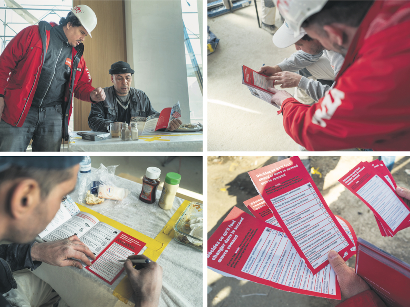Parmi les améliorations proposées, on retrouve la prise en charge du temps de trajet, les indemnités de repas à 20 francs, les pauses payées le matin et l’après-midi, le paiement des heures supplémentaires à 25%, la réduction du temps de travail, des chantiers dignes (toilettes propres, vestiaires chauffés, etc.), une meilleure protection contre le licenciement des travailleurs âgés, une limitation du travail temporaire, la hausse des contrôles des mesures de sécurité sur les chantiers et les conditions de travail, une vraie stratégie en cas d’intempéries et, enfin, la prise en charge par le patron des vêtements de travail et des équipements de protection individuelle.