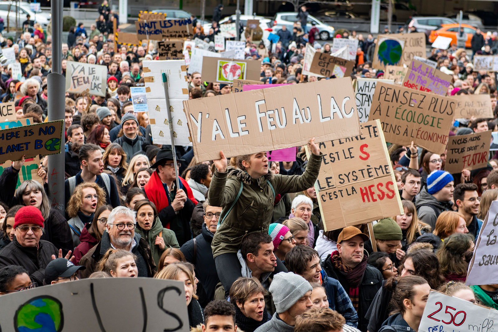 Le 18 janvier, les étudiants de Suisse ont fait leur première grève du climat qui a réuni des dizaines de milliers de jeunes. Le 2 février, des milliers de personnes sont descendues dans la rue avec eux dans plusieurs villes de Suisse (ici à Lausanne). Au total il a été dénombré plus de 65000 manifestants. Le 15 mars, la jeunesse appelle une nouvelle fois la population à se mobiliser.
