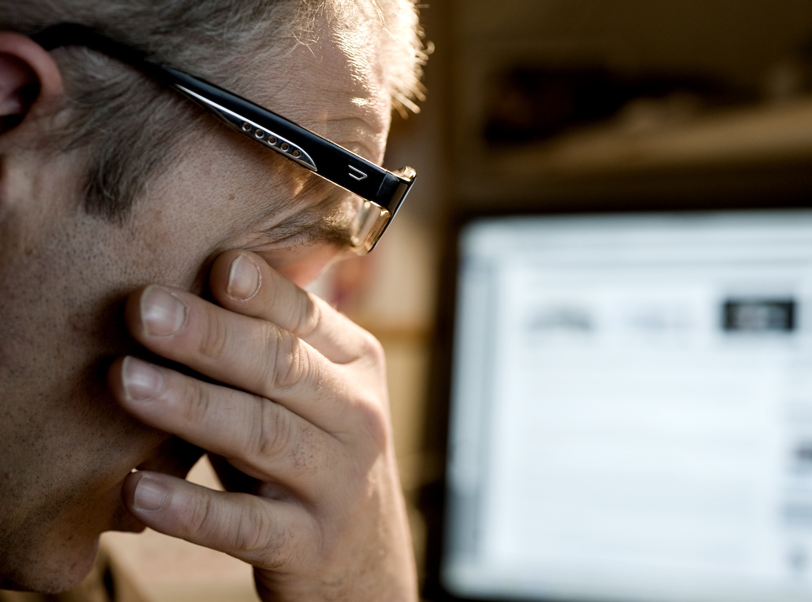 Un homme se tient la tête face à son ordinateurs