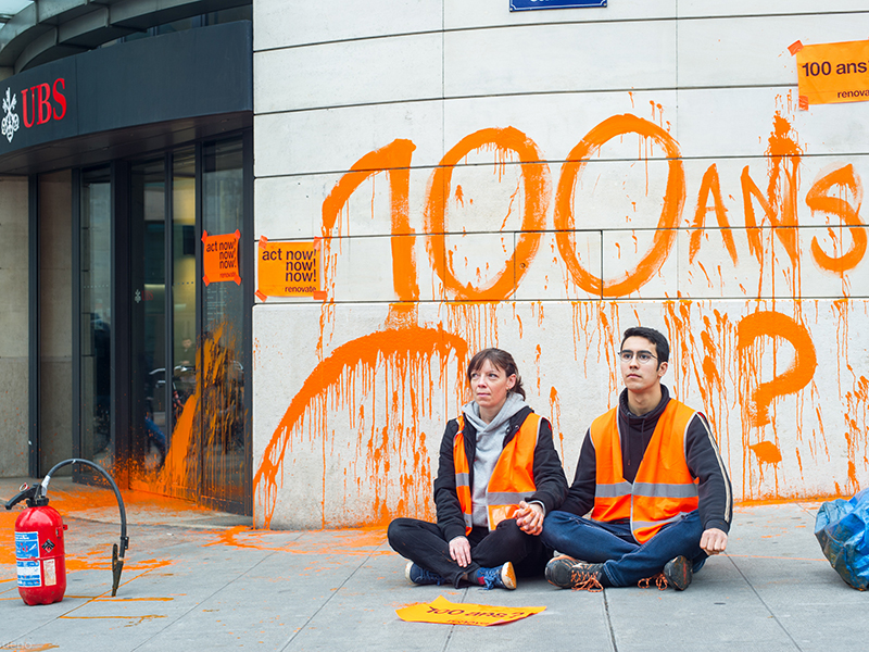 Lundi 20 novembre, Prune se rend à Genève avec plusieurs autres militants de Renovate Switzerland. La veille, elle a travaillé dans son café, puis fêté ses 43 ans en famille, notamment avec ses trois enfants entre 5 et 12 ans. C’est sa première action de désobéissance civile proprement dite. Par contre, ce n’est pas la première fois qu’une succursale d’UBS se trouve dans le viseur des lanceurs et des lanceuses d’alerte. Cette fois-ci, ce ne sont pas les investissements fossiles qui sont ciblés, mais son vaste secteur immobilier qui devrait faire de la banque, selon Renovate Switzerland, «un acteur majeur dans la rénovation thermique des bâtiments». Or, au rythme actuel, il faudrait cent ans pour rénover le parc immobilier suisse.