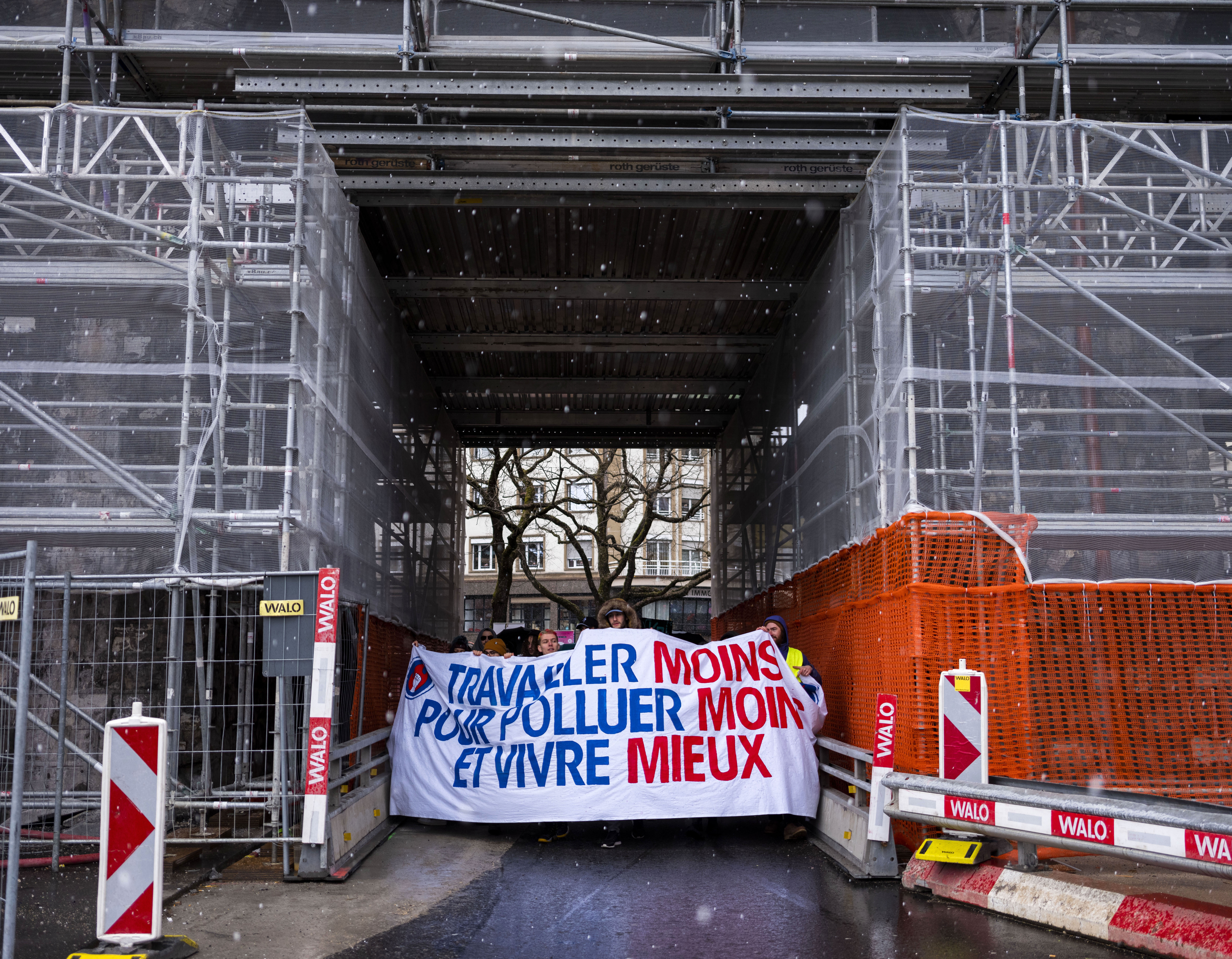 Banderole travailler moins pour polluer moins et vivre mieux.