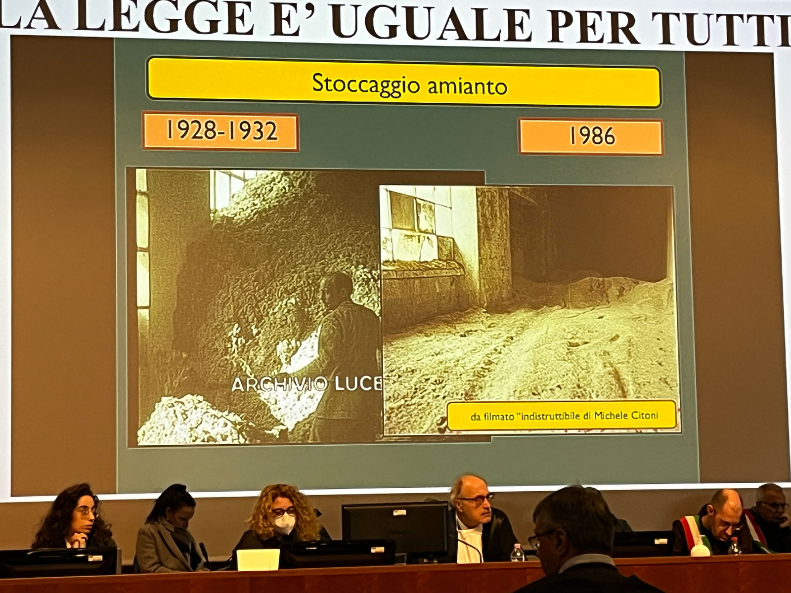 Image du stockage de l’amiante projetée durant une audience. Pratiquement aucun changement en 50 ans…