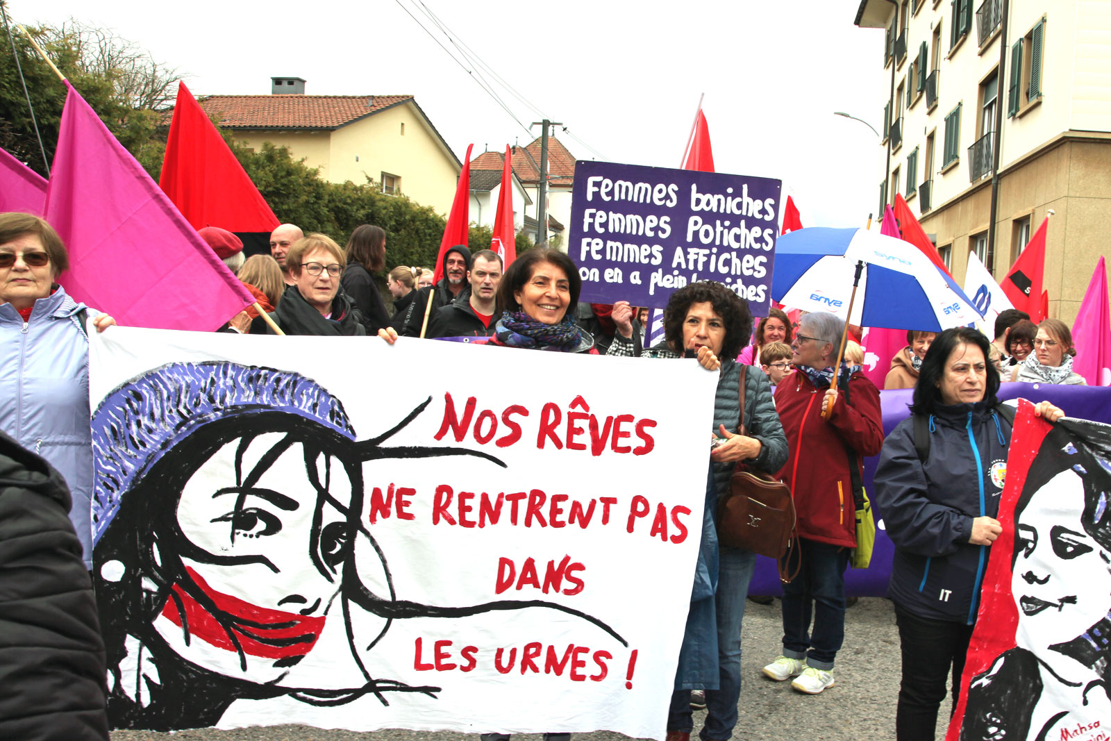 On y a retrouvé les traditionnels partis de gauche et les syndicats. Unia avait placé son slogan sous le signe du «Non à Ettlin!» et de la protection du salaire minimum. Les horlogères ont, elles, appelé à l’égalité salariale et le groupe des retraités était aussi bien représenté. La question de la réforme LPP figurait également au cœur du débat. Les collectifs féministes, en route vers la grève du 14 juin prochain, étaient bien présents.
