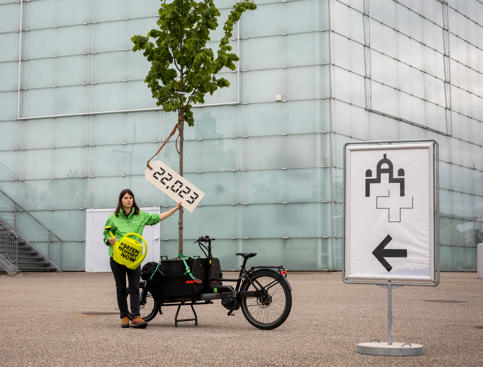 Greenpeace a symboliquement approché les parlementaires le 4 mai dernier, au début de la session extraordinaire tenue à BerneExpo, avec un arbre, afin de leur adresser une pétition signée par 22500 personnes demandant un green new deal, une reprise verte.