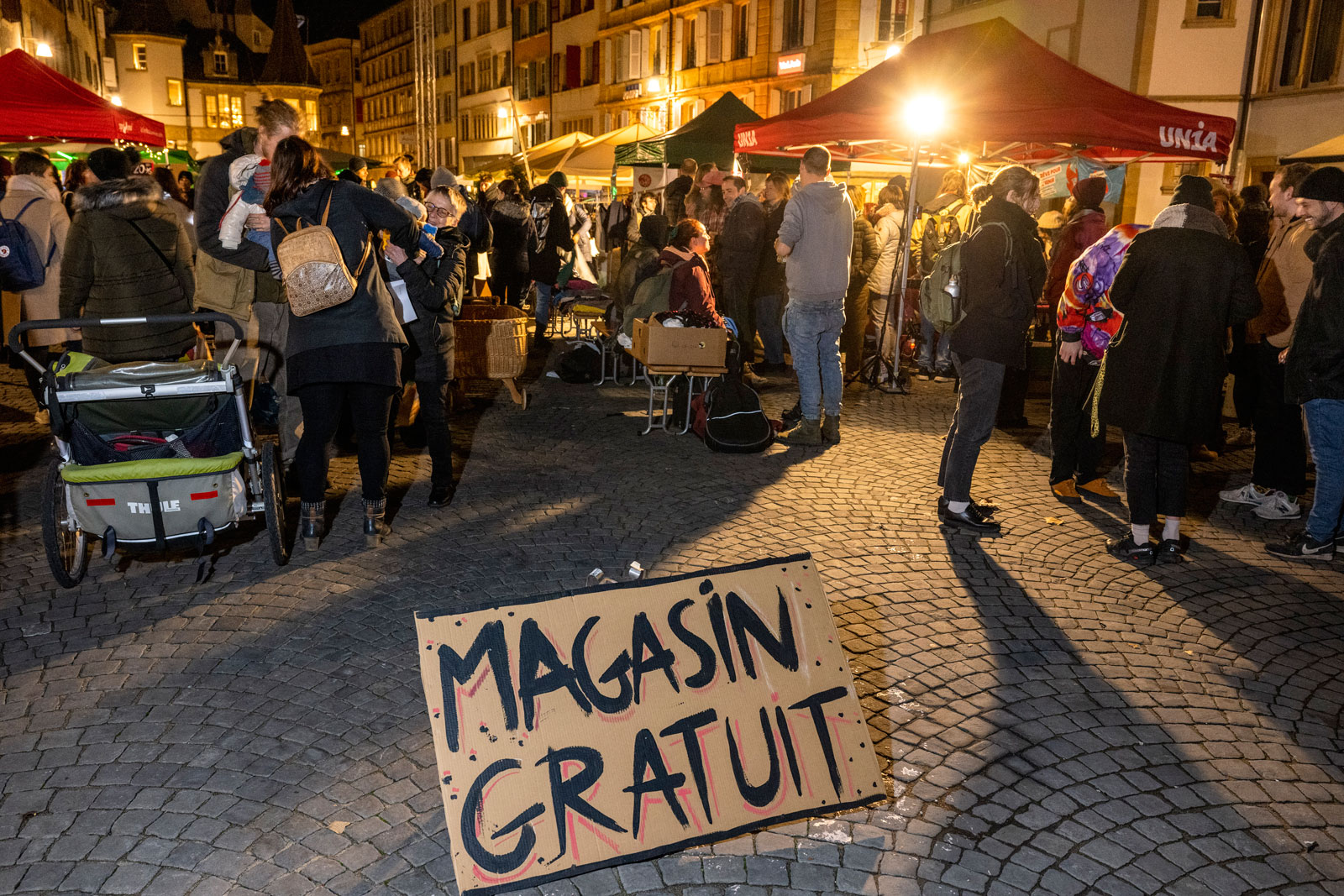 A Neuchâtel, des collectifs écologistes, féministes et anticapitalistes ont créé un espace de solidarité et de gratuité à la place des Halles pour sortir des logiques marchandes. Un Black Freeday féministe, durant lequel une marche silencieuse a rendu hommage aux victimes de violences liées au genre. Une convergence des luttes revendiquée pour «faire émerger un autre monde», rappelant que le capitalisme est fondé sur le système patriarcal et que cette croissance sans fin met en danger la planète et dégrade les conditions de travail de centaines de millions de travailleuses et de travailleurs dans le monde.