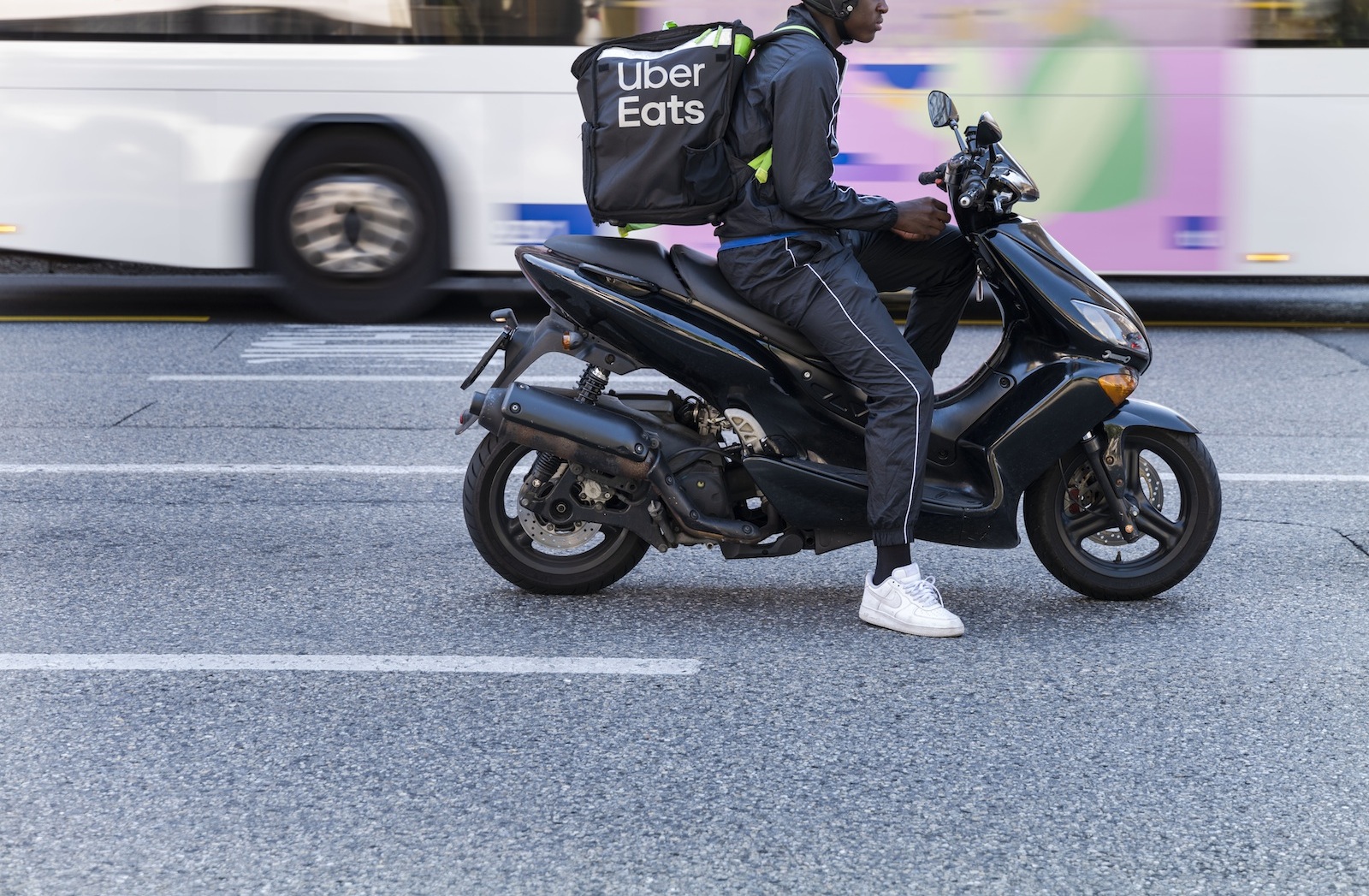 Livreur Uber Eats sur son scooter.