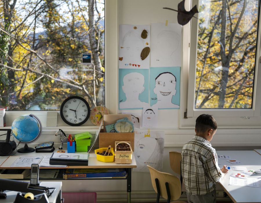Dans les trois classes du centre fédéral pour requérants d’asile de Vallorbe, filles et garçons de 4 à 16 ans suivent un enseignement particulier pendant les semaines que dure la procédure