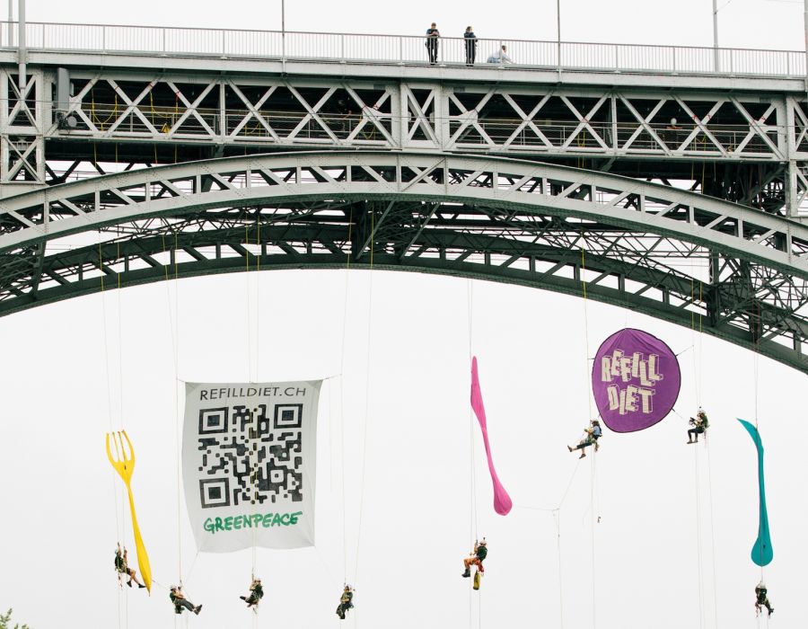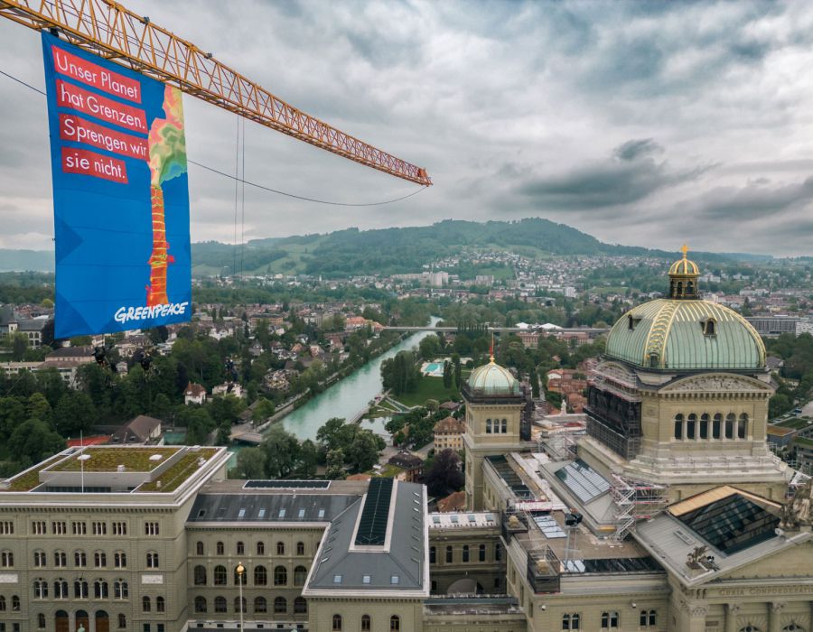 Le 13 mai, des militants de Greenpeace ont déployé une bannière géante à Berne, sur une grue près du Palais fédéral et de la Banque nationale suisse. Dessus, on pouvait lire:...