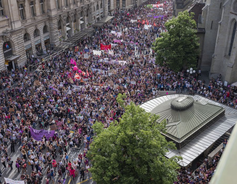 Le 14 juin, à Lausanne, aux côtés de la secrétaire syndicale d’Unia Vaud et militante féministe, Tamara Knezevic. Récit