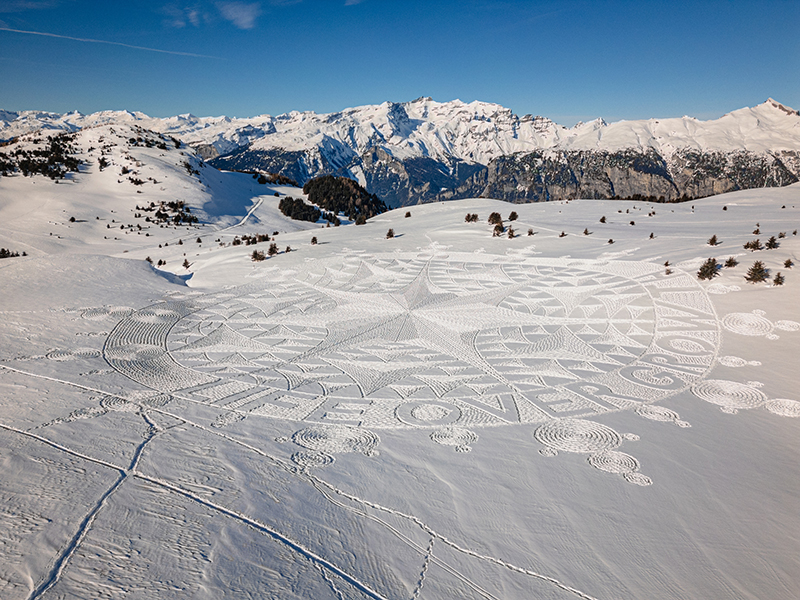 Et l’artiste Simon Beck d’expliquer pourquoi il a collaboré avec l’organisation environnementale: «Je vois et je vis tellement de belles choses dans mon travail en montagne. Tout cela est en danger. Nous devons promouvoir ce qui est vraiment important: une économie et une société au service de la vie et non d’elles-mêmes.»