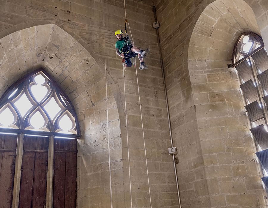 Les cordistes réalisent des travaux en hauteur, difficiles d’accès, sans utiliser d’échafaudage ou de nacelle. Reportage le nez en l’air, les yeux rivés sur les combles de la cathédrale de Fribourg, où des ouvriers acrobates tutoient le vide...