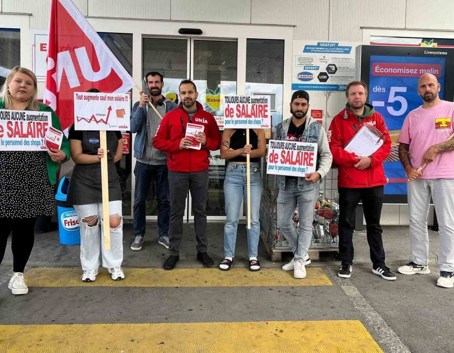 Dans le cadre de la journée de mobilisation dans le commerce de détail, une action a été organisée par Unia dans deux stations-services vaudoises afin d’exiger des hausses salariales urgentes