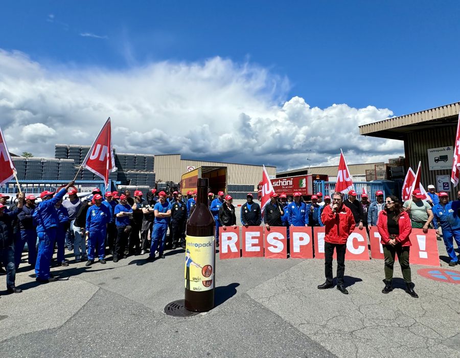 Le personnel de Vetropack, soutenu par Unia, a participé à une action syndicale ce vendredi pour exiger la négociation d’un plan social et le maintien des emplois pendant le processus